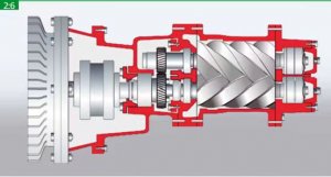 典型的油潤(rùn)滑螺桿式空壓機(jī)機(jī)頭與驅(qū)動(dòng)